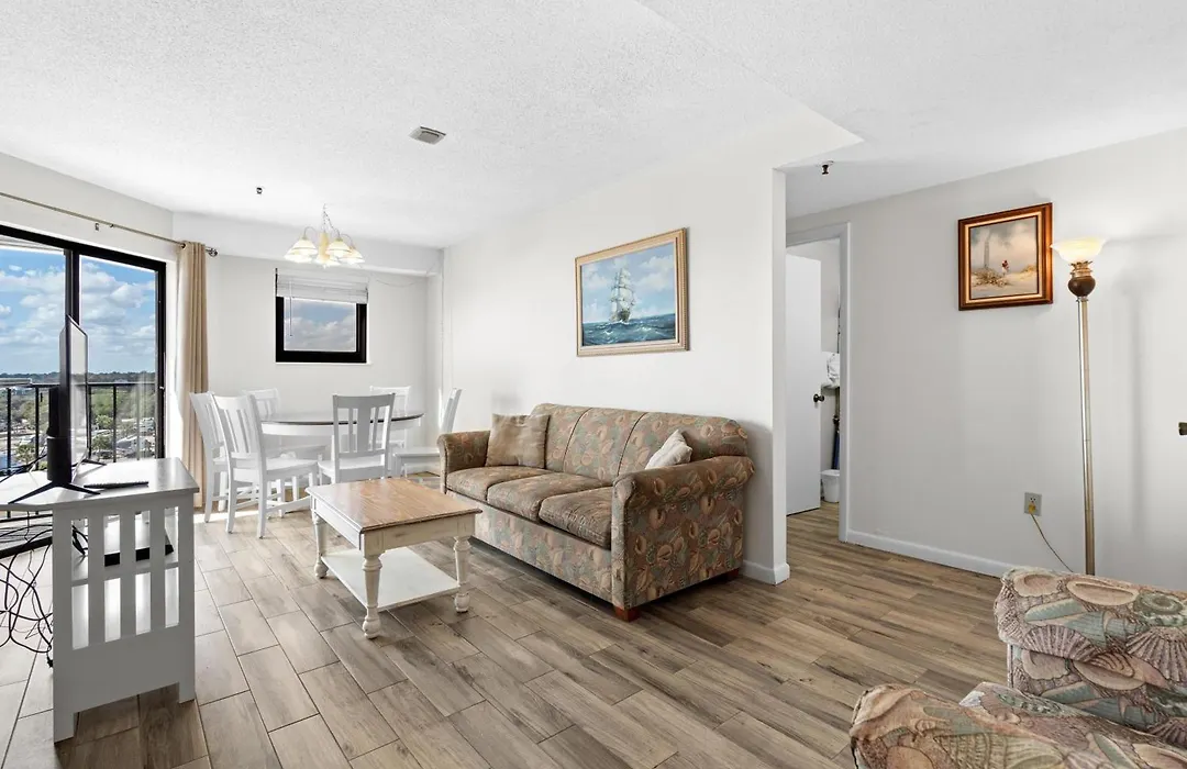 The kitchen amenities at the Myrtle Beach accommodation feature coffee and tea making equipment, a refrigerator, and kitchenware, provided in a dining area. A sauna and an indoor pool are available on-site.
